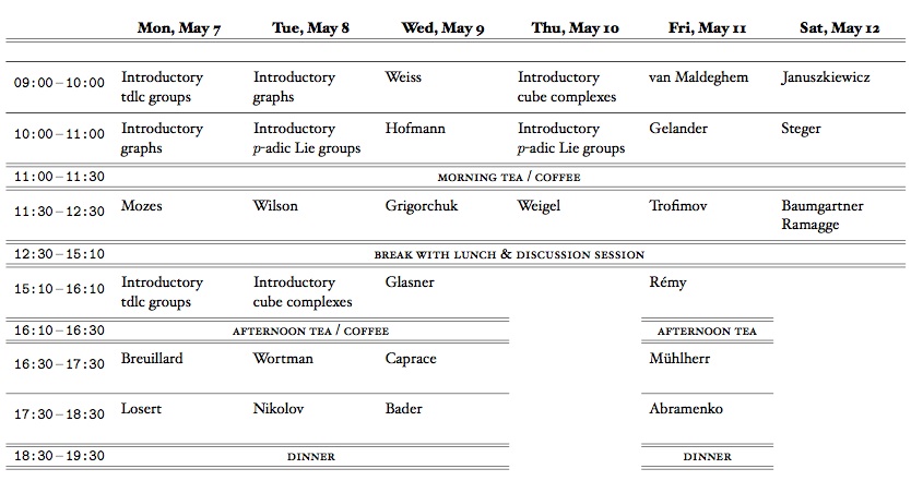 The schedule of talks (pdf-format) can be downloaded here. A complete program with titles and abstracts will be provided later.